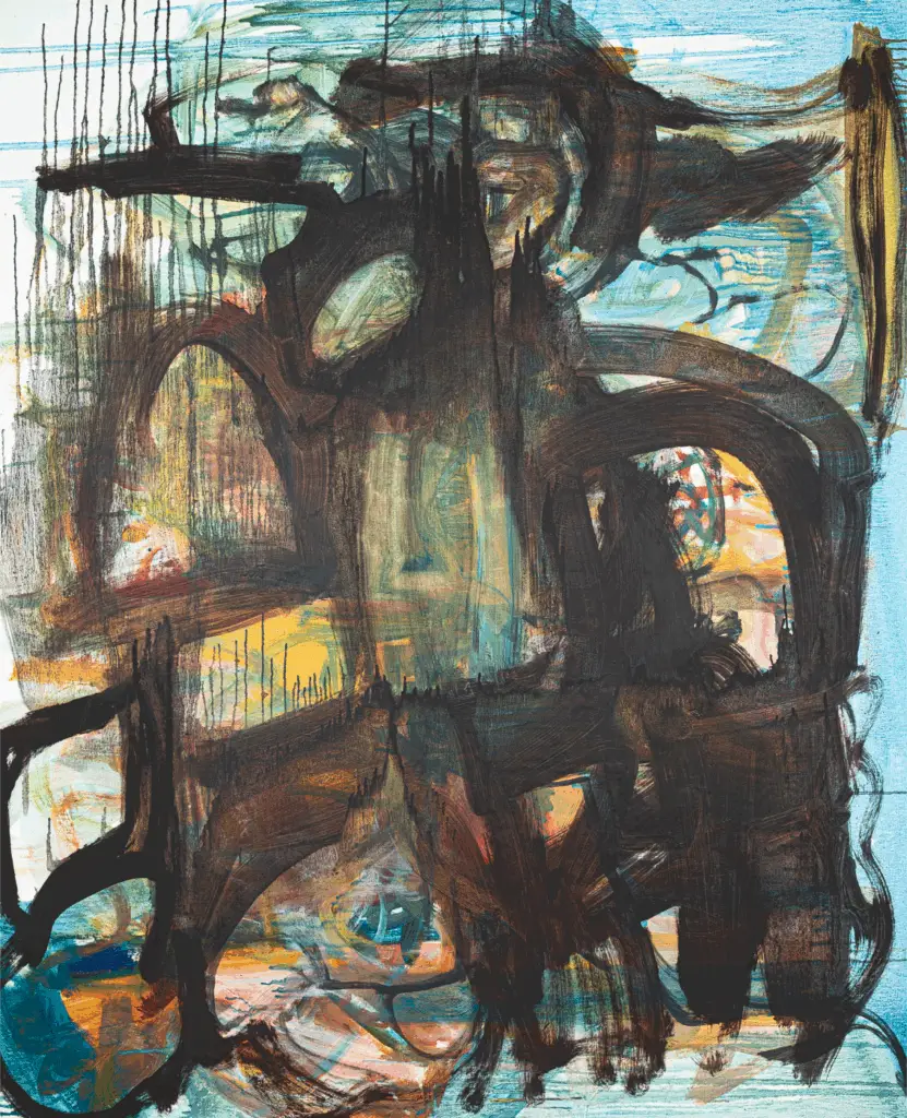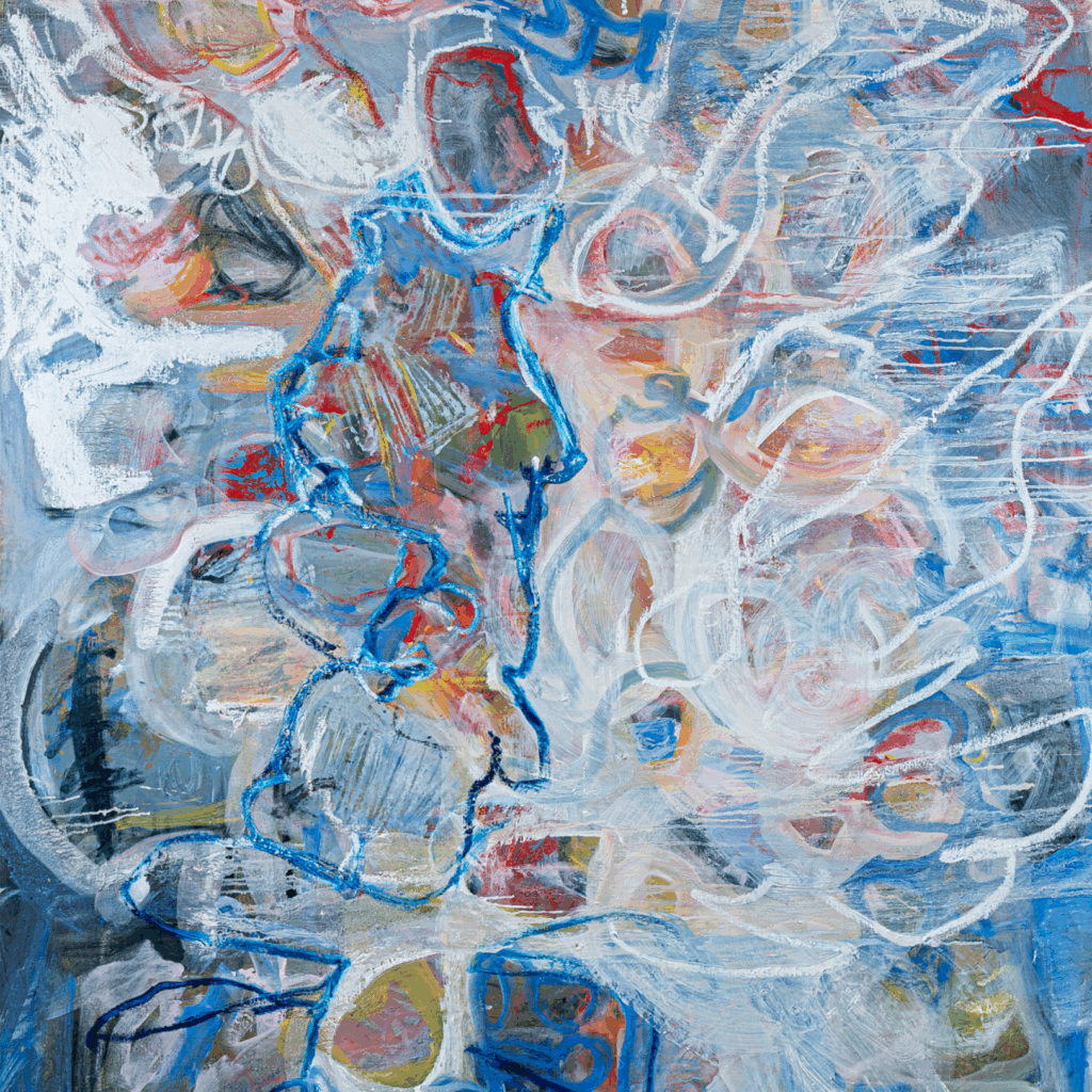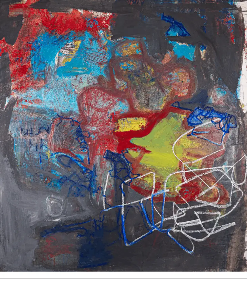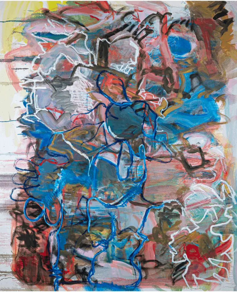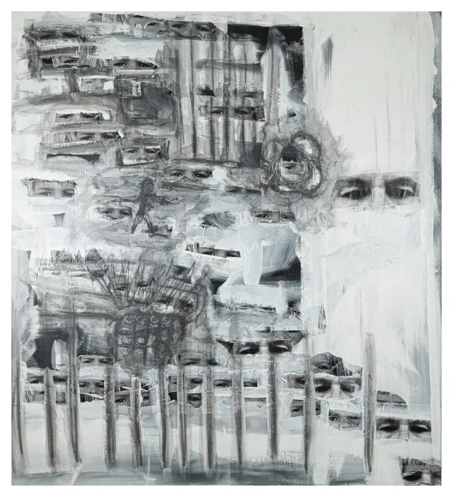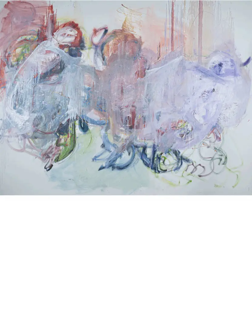 Angel and the sheet (embalmed) Oil, oil stick, oil stick, oil pastel on canvas 54” x 78” Year of Creation:2022